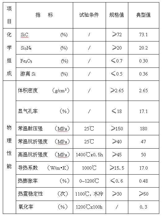 氧氮化硅結(jié)合碳化硅磚理化指標(biāo)