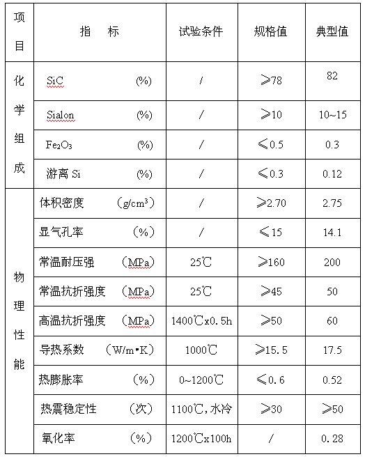 塞隆結(jié)合碳化硅磚理化指標(biāo)